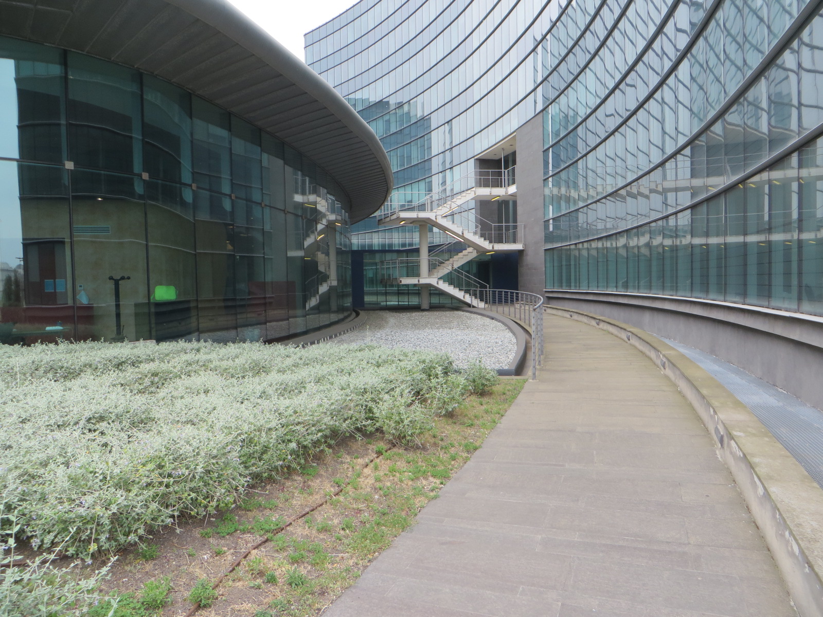 L’edificio n.2, con sagoma ad arco di circonferenza, si sviluppa anch’esso su 8 piani fuori terra ad uso uffici, un lastrico solare e 2 piani interrati.