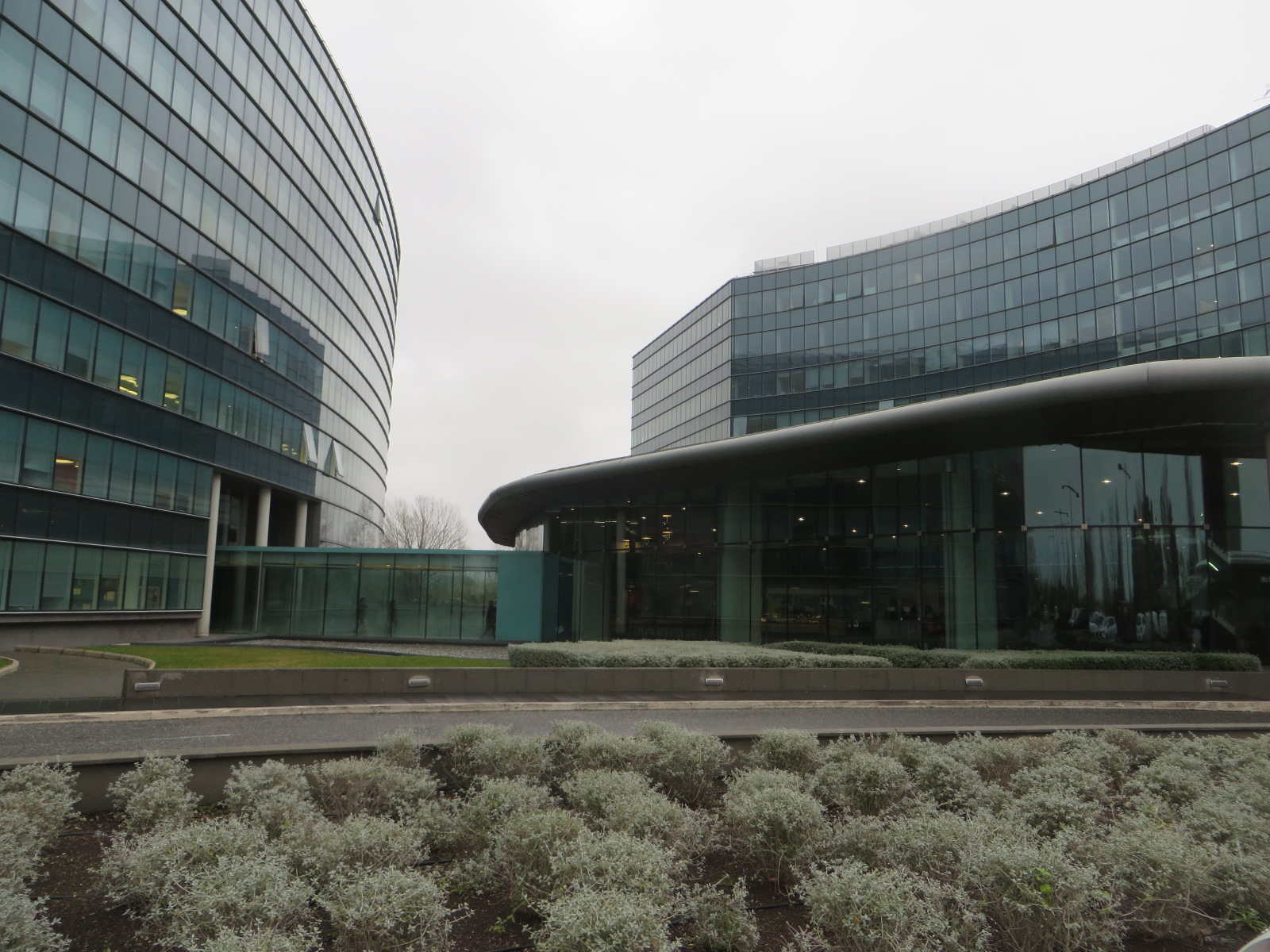 L’edificio n.1, caratterizzato da una forma ellittica, si sviluppa su 8 piani fuori terra adibiti ad uffici, oltre un lastrico solare (dove sono presenti gli impianti tecnologici) e 2 piani interrati.